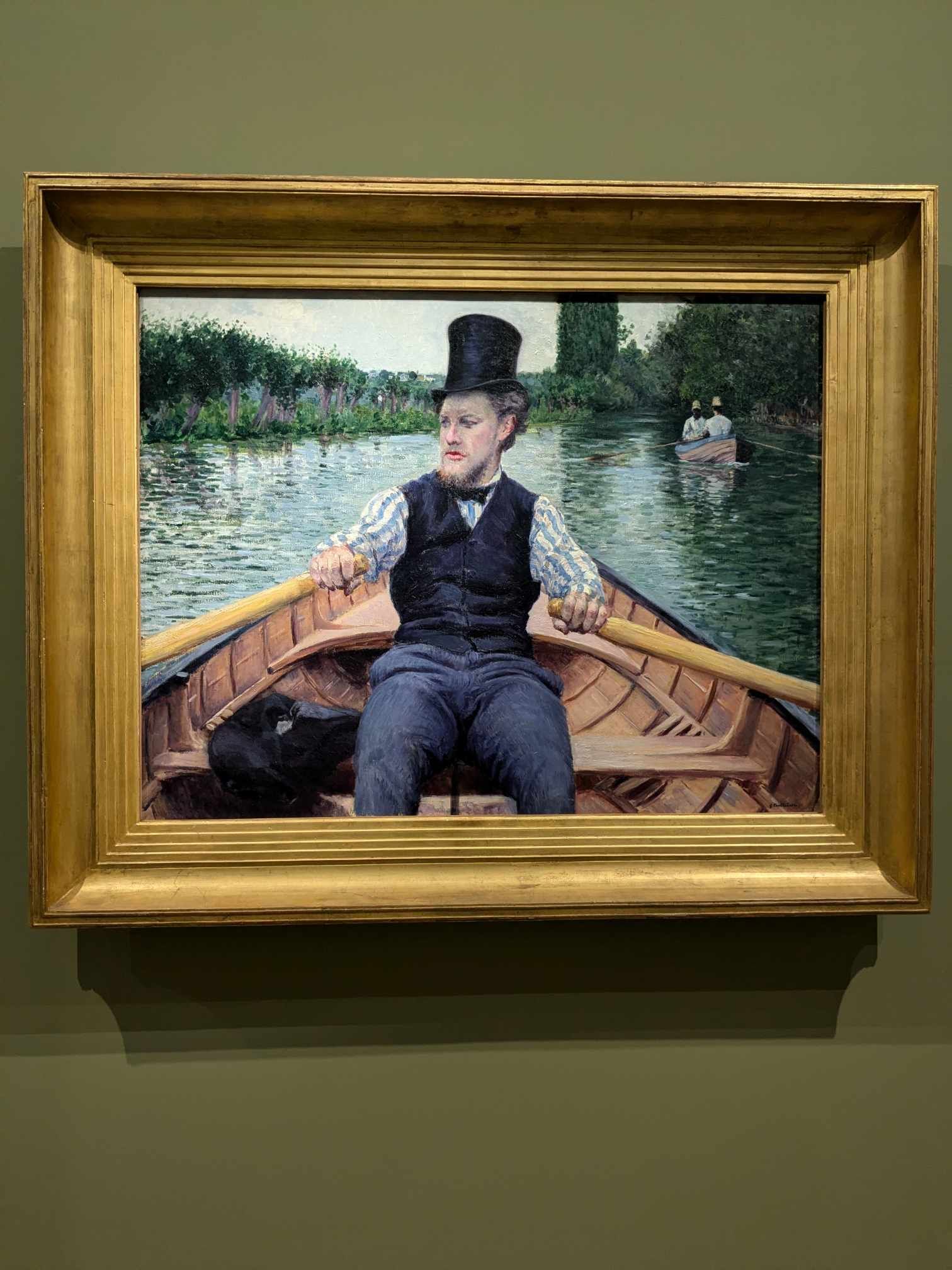 L’exposition présente également quelques portraits de familles, quelques nus (très originaux pour l’époque : poses naturelles, de dos, pilosité féminine), et les nombreux tableaux que Caillebotte consacre aux canotiers et aux activités nautiques qu’il apprécie particulièrement vers la fin de sa vie.