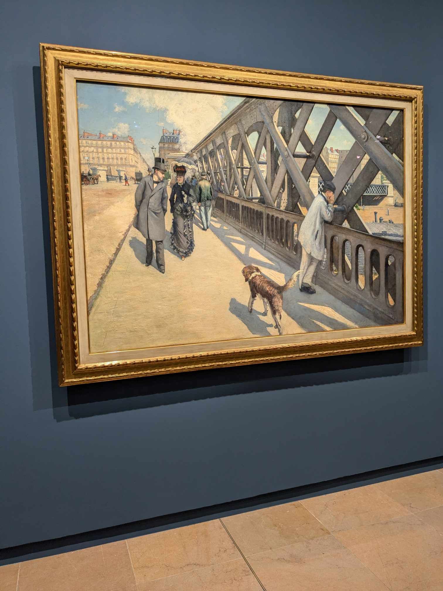 Caillebotte est également, comme moi, un parisien. Et ses représentations de la ville, fraîchement « haussmanisée », m’enchantent. J’ai l’impression de la voir à la fois neuve et ancienne. En tout cas, elle apparaît toujours dynamique et belle. Caillebotte met également en avant sa modernité avec de nombreuses toiles représentant le pont métallique de l’Europe, dans son quartier, le IXe arrondissement actuel.